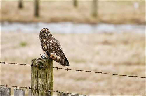 When I took the photo of the Owl looking straight at me, everyone was watching a Peregrine Falcon but I heard the Short-Eared Owl call a few feet to the left of me. I looked around and there it was, less then eight feet away. So I slowly took a few steps back so I don't invade its space and I snapped one with my 70-300mm VR. I still visit that particular area in order to capture a better photo of the bird when its sitting on a fence post.