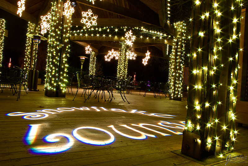 This was taken at the Christmas lights display at our local botanical gardens. There were a couple of poles wrapped in purple/blue lights and a staircase w/ white lighting. Here's a pretty basic shot of it: