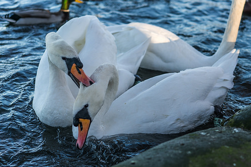 Don't encourage him!I suppose it came over to you because it heard it's cygneture tune(swan song)