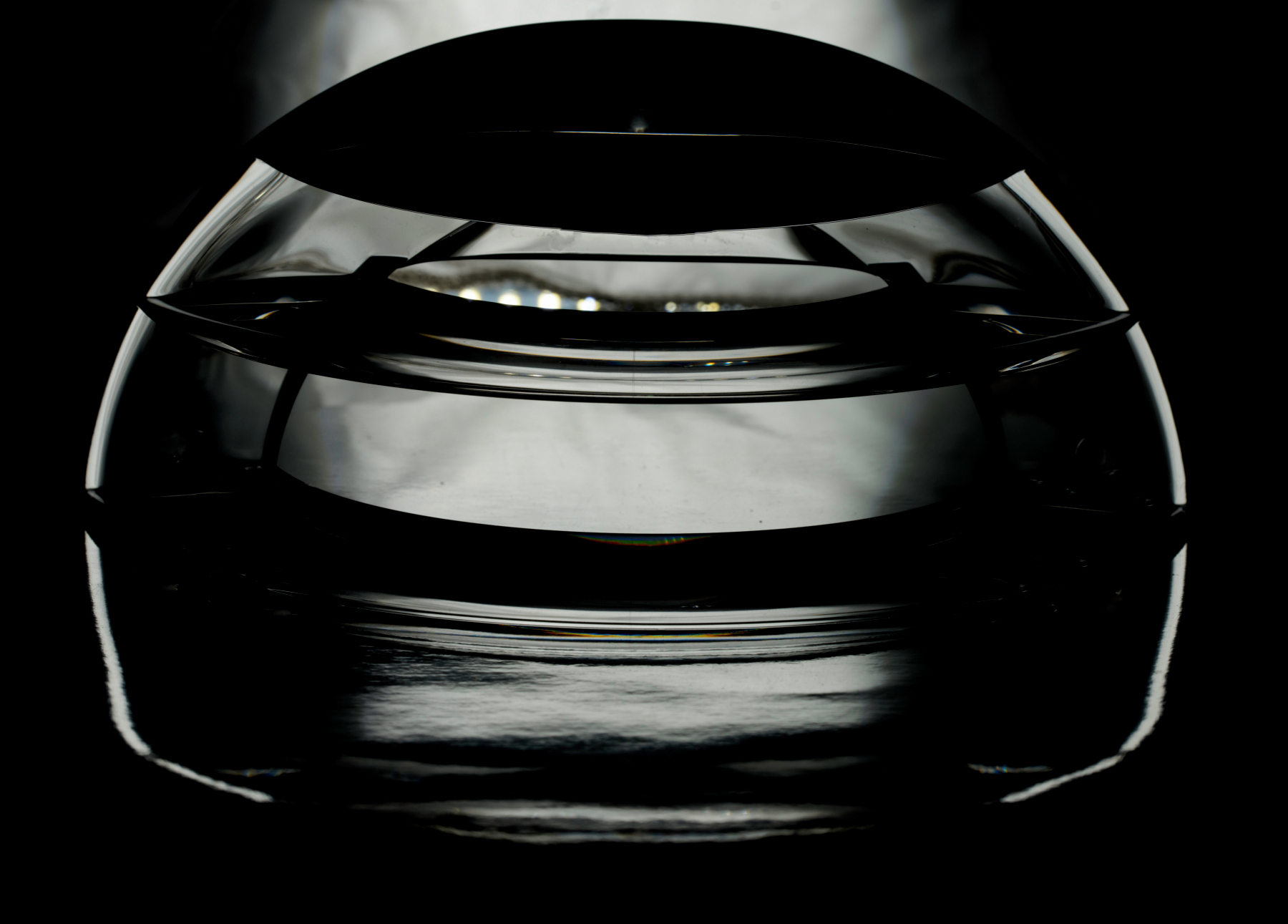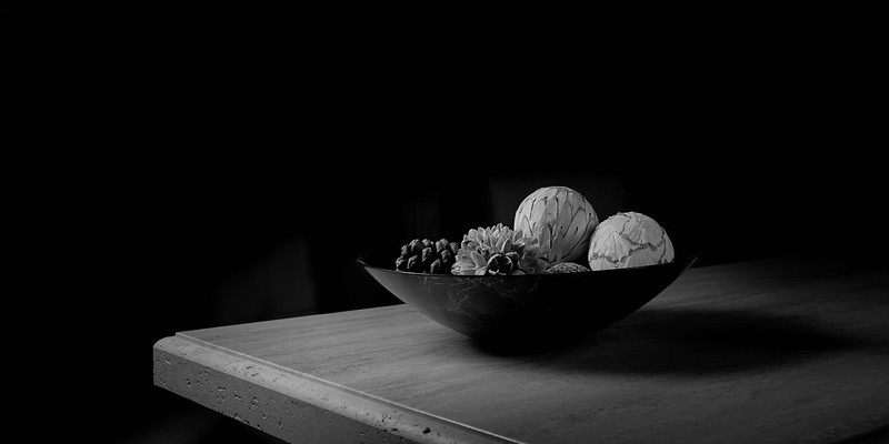 Very creative.LOL! Nope..... Actually no one would ever be able to figure this one out! I had bought a clear, highly reflective acrylic thingy for the desk which has divided sections for files or envelopes, because the shape of it was rather intriguing to me and I envisioned some interesting photo possibilities.... When I started out shooting it, I tried different ideas and nothing was quite "jelling," so I decided to see what would happen if I used just one light source facing the camera and shooting through the thing. Draped a diffuser cloth over the black foam core I had in place, then tucked a small LED panel under that, aiming at the camera, with the thingy placed on its side rather than its normal position, and was rather surprised at the results. The subject was positioned on a piece of shiny black art paper. So, no Darth Vader involved!![]()