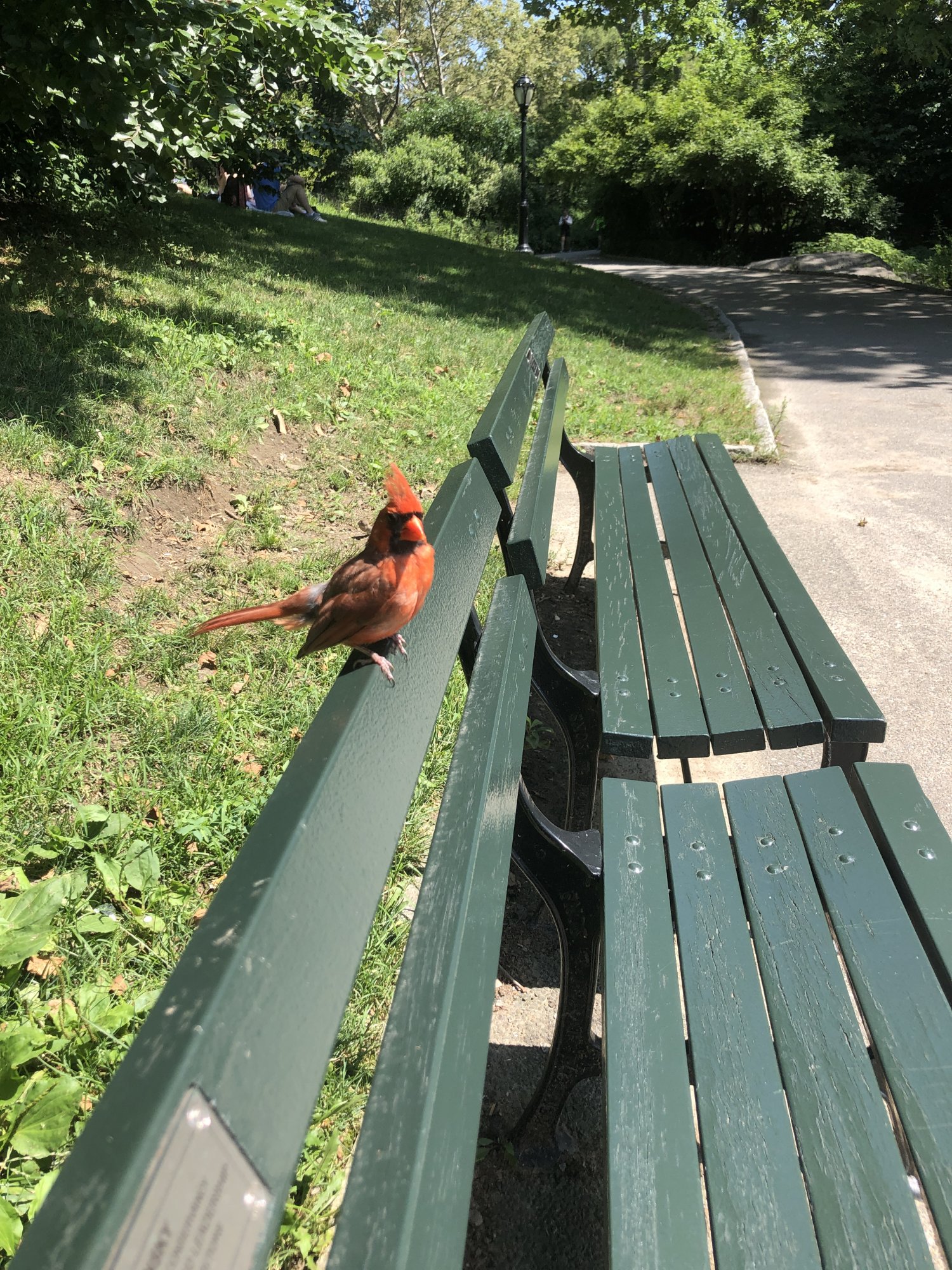 Last summer in Central Park on my favorite bench when along came a Cardinal with some interesting gossip. Shot with iPhone 8.View attachment 1940831