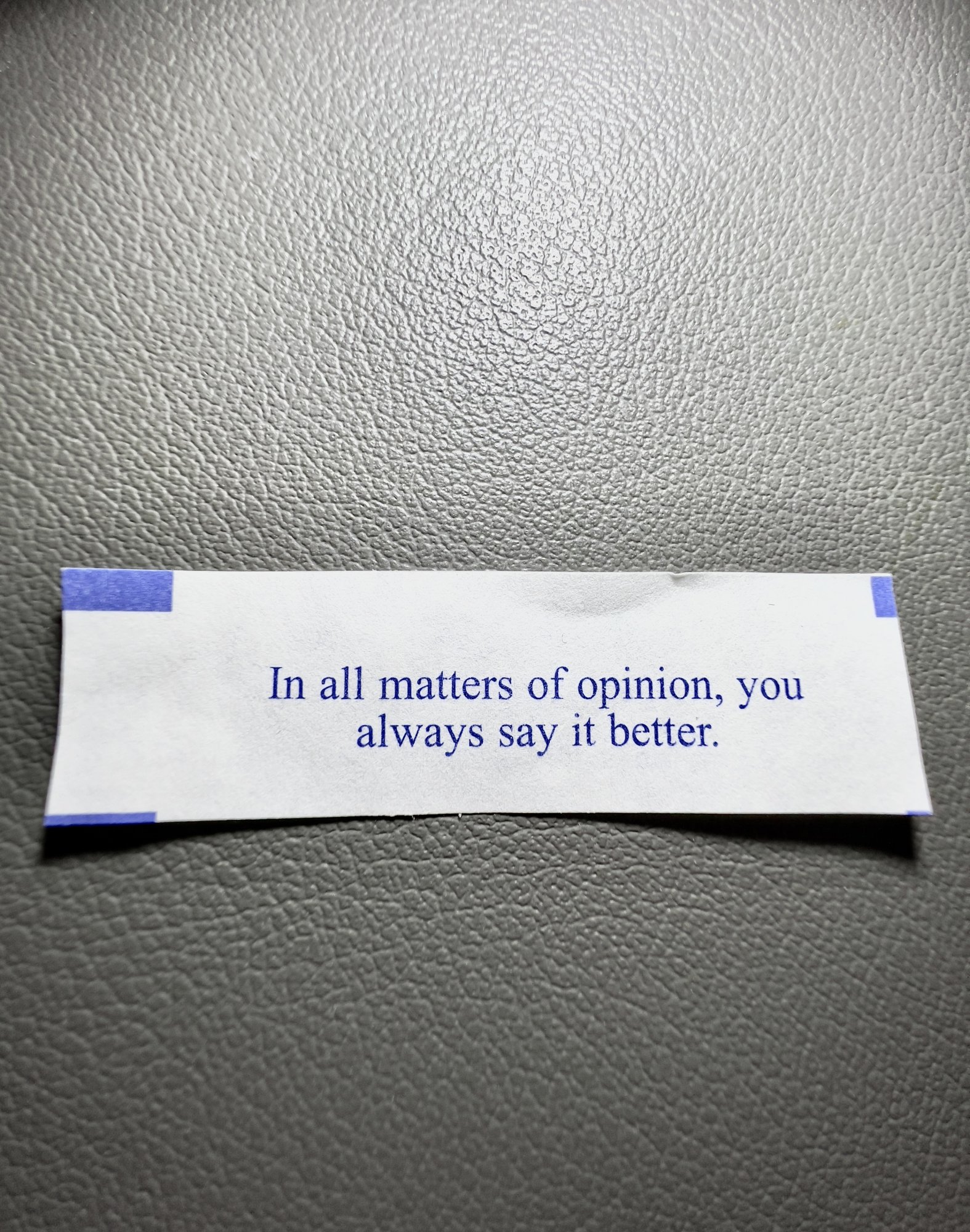 We went to one of our favorite Chinese restaurants last night, and much to my wife's chagrin, this came out of my fortune cookie.😇😈 But, if I gotta be totally honest, it doesn't change anything in the order of the food chain around here.