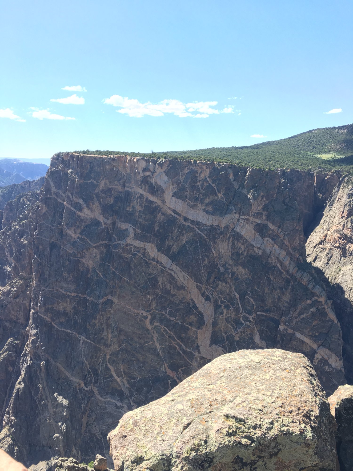 “In the park, the Gunnison River cuts through Precambrian rock nearly 2 billion years old! Most of these rocks are metamorphic and show evidence of exposure to extreme pressures and temperatures. Some of the rocks are igneous and formed from magma that pushed its way up into cracks in the Earth's crust, where it cooled and crystallized.