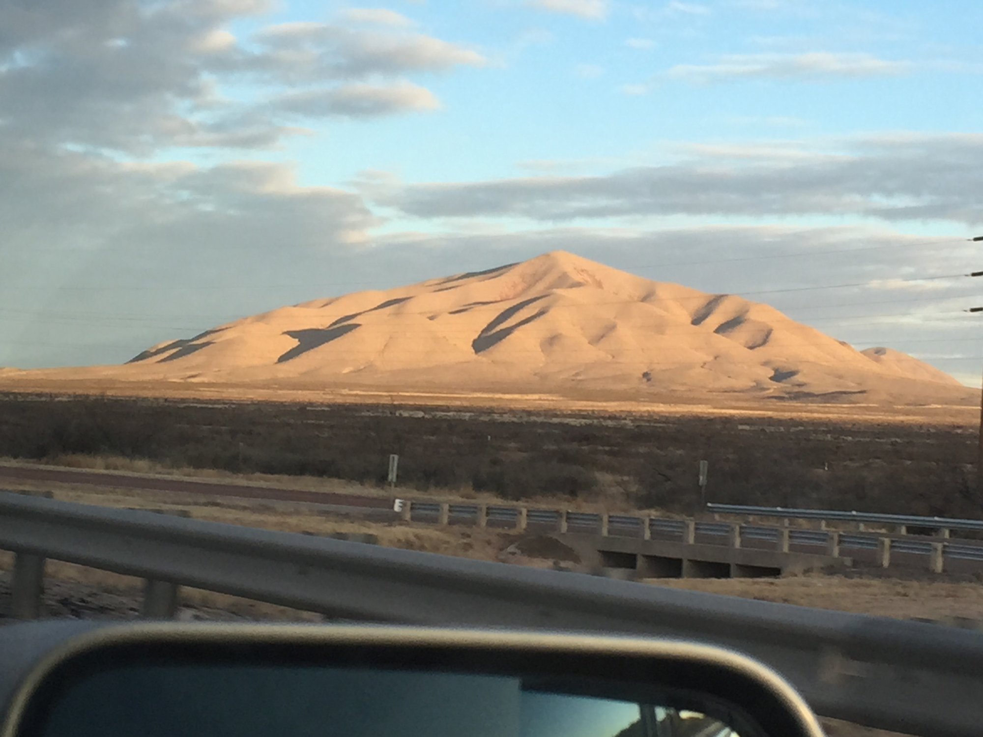 My older brother had a passion for geology (became a petroleum engineer), and so we visited a rock shop in nearly every town we went to out west. Even in grade school he knew his schist!Sierra Blanca Texas. Favorite mountain I always take photos of on way to annual Tucson Az Rock, Mineral and Fossil Show. Sierra Blanca Mountain, which was in turn named for the white poppies that grew there (sierra blanca is Spanish for "white mountain"). I always thought name was from the whitish (well off white) colors of the volcanic rocks making it up. I guess an appropriate name in either case. A favorite view.