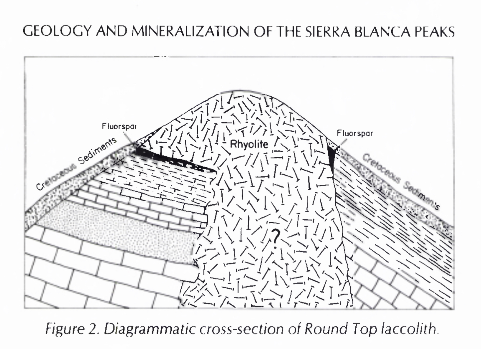 Since I am a retired geologist going to include a bit about this volcanic Mt : The Sierra Blanca range begins two miles north of Sierra Blanca in south central Hudspeth County and extends ten miles to the northwest (with its center at 31°15' N, 105°26' W). The range has three distinctive conical, volcanic peaks: Sierra Blanca, the highest in the range, with an elevation of 6,891 feet above sea level; Little Blanca Mountain, with an elevation of 6,178 feet; and Round Top, with an elevation of 5,732 feet.