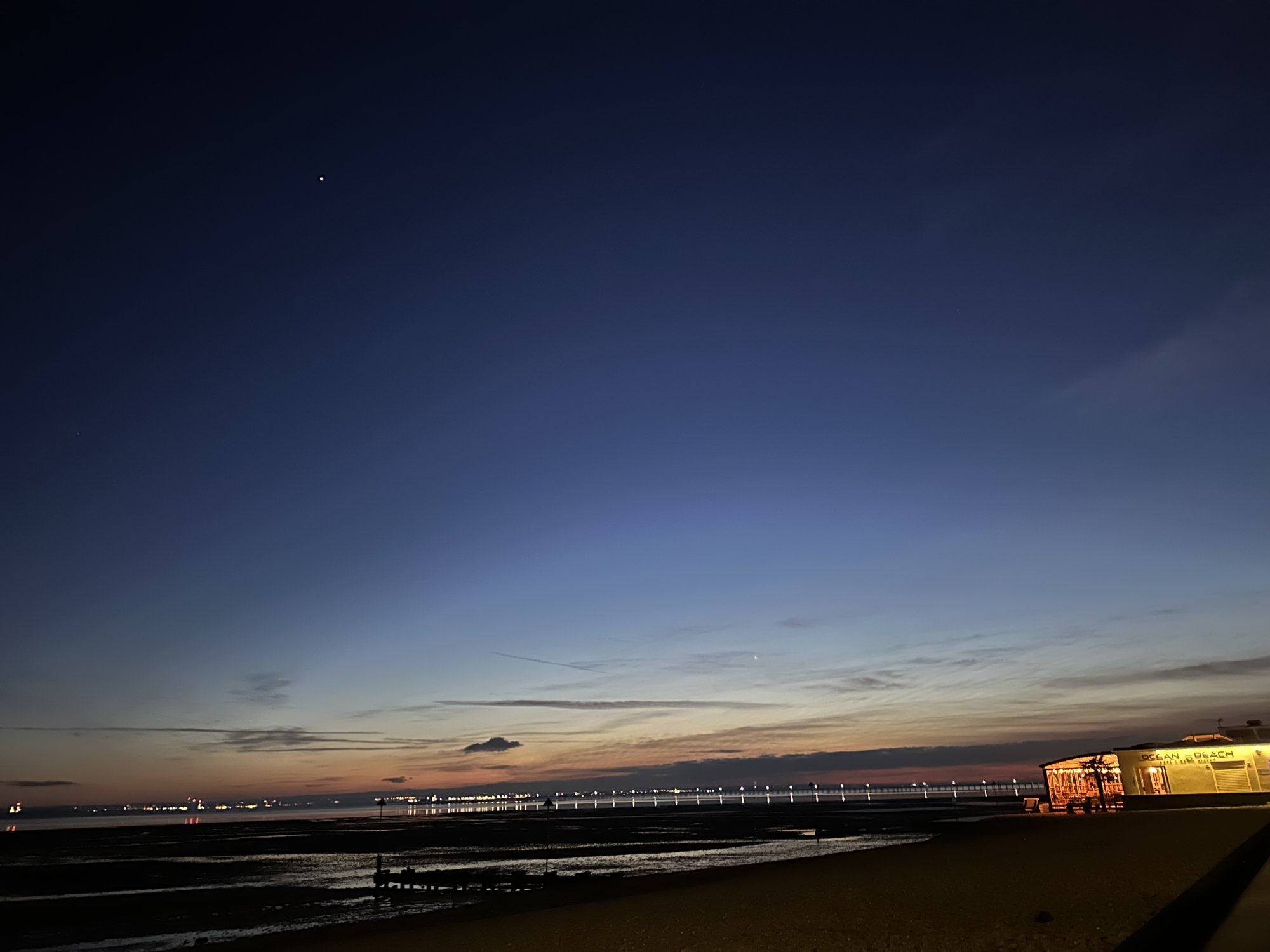 Running on the planet theme. Jupiter top left. Venus just above the pier. Shot on an iPhone 14 Pro.