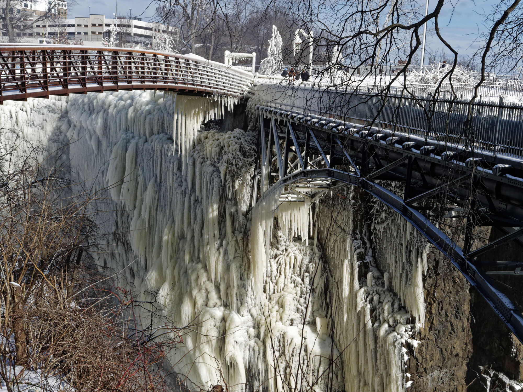 Isn't it ... It's at the Paterson Great Falls , in Paterson NJ . We've had a lot of rain over the last month or so , and lots of folks have been flooded out both above and below the Falls . Anyway , the excessive flow over the Falls coupled with well below freezing temperatures over the last couple of days , combined with spray from the Falls created some uncommon icing in the area around the Falls . More Pix over the next few days .That is a fascinating view...