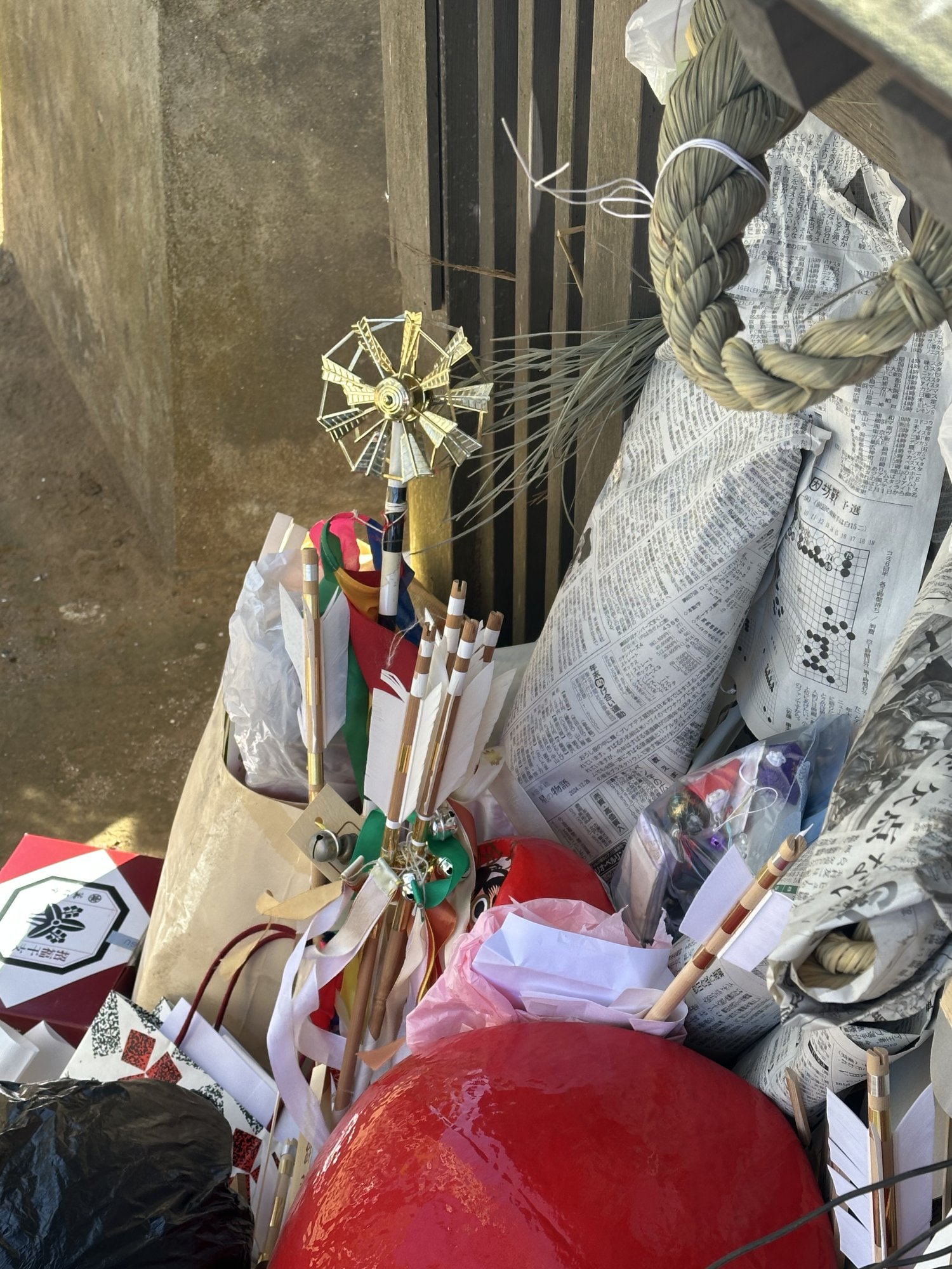 That is correct. Waste it causes doesn't always get burned as you see here.I know omamori and daruma are supposed to be replaced and burned at the end of a year. Maybe these are past their expiration date?