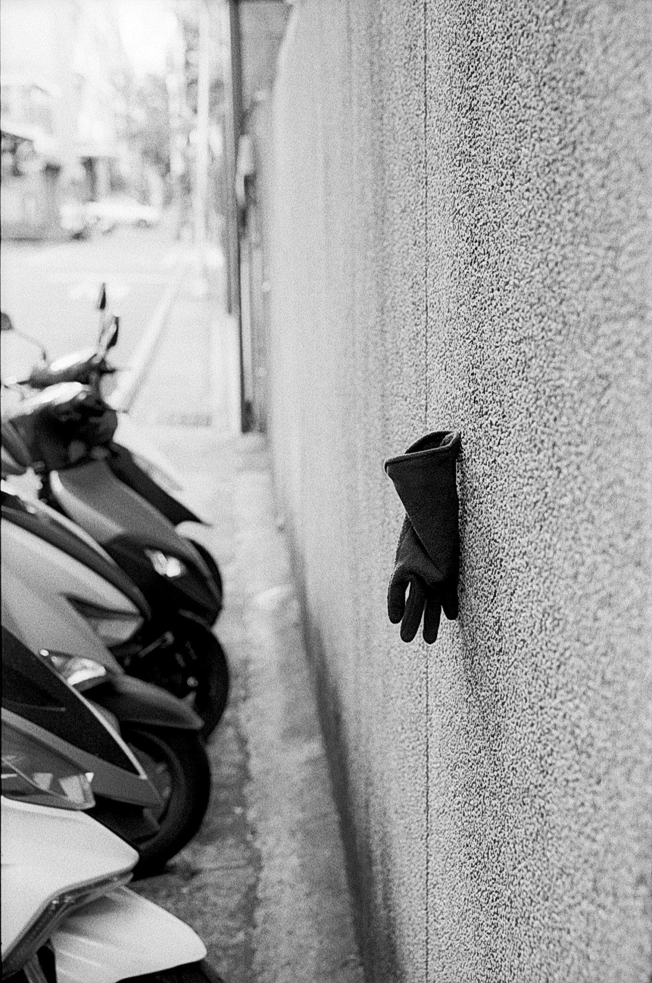 Don't know why someone hung a rubber glove on the wall like this, but it happens to be perfect for testing how this film handles contrast at this exposure rating. Shot with a Nikon F6 on Kodak Double-X metered at ASA 250.