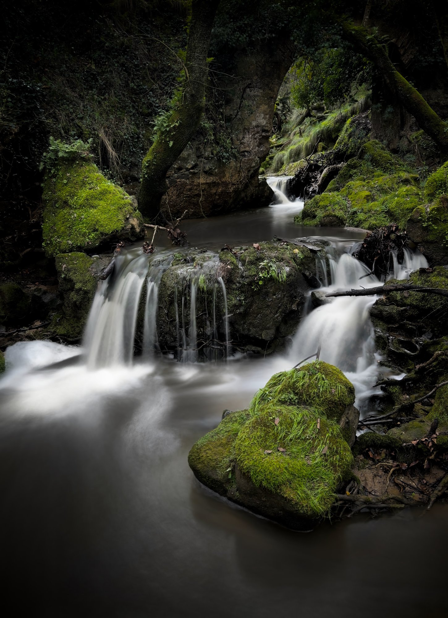 Very interesting, I know this is a comparison but normally we post one photo per day.Yesterday, I took my Olympus OM-1 and three lenses in a backpack to a park in Portugal and walked a couple of miles with all that gear. It was heavy and cumbersome to navigate the rain soaked ground near the streams. I took many shots with the liveND feature of the OM-1 but was only able to get about 3.2 seconds of hand-held stabilized shots of the rapids with the camera. In contrast, I was able to use an app called Light Stack on my iPhone 16 Pro to get 10 second shots saved as a PNG hand held. When I got back to my computer I was able to edit the files in Pixelmator Pro and didn't see much difference in the result - except maybe that the iPhone shots were better.