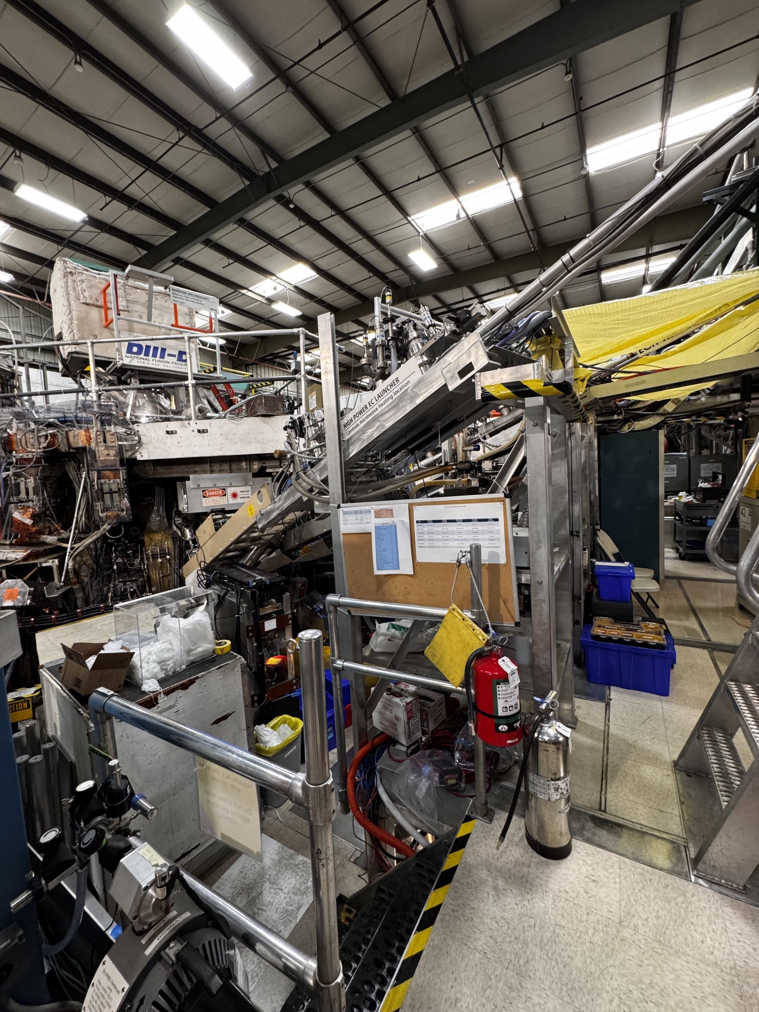 That facility offered a tour. To ensure everyone’s safety, the red lights are only turned on when a nuclear shot is fired. During the tour, the engineer who showed us all the equipment explained that they wear coveralls, gloves, and other protective gear when working in radioactive material areas. They use lasers to test their equipment and wear glasses to protect their eyes. Additionally, he is the physics operator in the lab, responsible for deploying the nuclear fusion shots from the control room.That doesn't sound good.