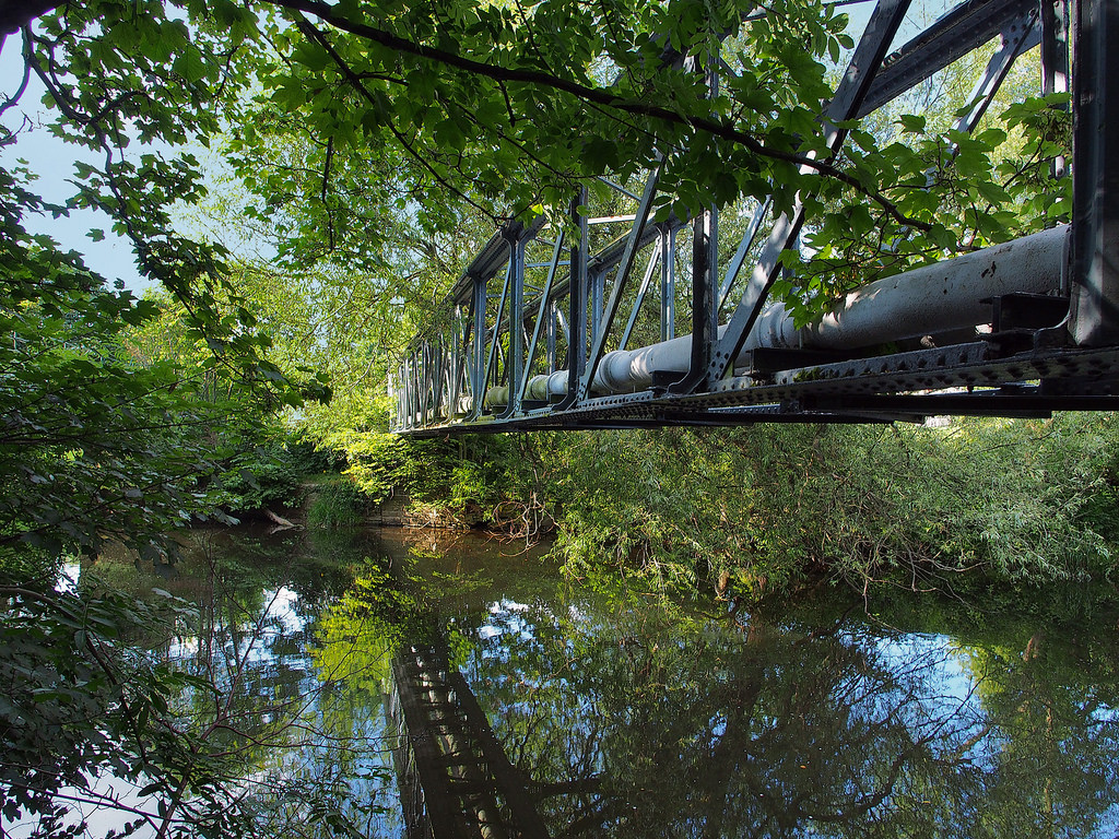 Pipe Bridge by Parkin Pig, on FlickrNice, someone got it! I do the same, normally just find out the town something was in then look at a local business, search it with Google Maps. Like if you see a McDonald's in the background, it's easy to just search McDonald's and check each one on Street View until you find the right one.