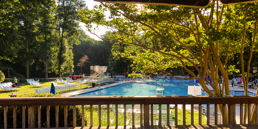 My kids are 9 & 11 and swim year round. We are now in the heart of summer swim, and we spend the bulk of our summer days at the pool. This is just a phone photo (and I can't quite get the perspective right on this with all the lines), but the pool gets the best morning and evening light and I am sometimes dazzled by it.