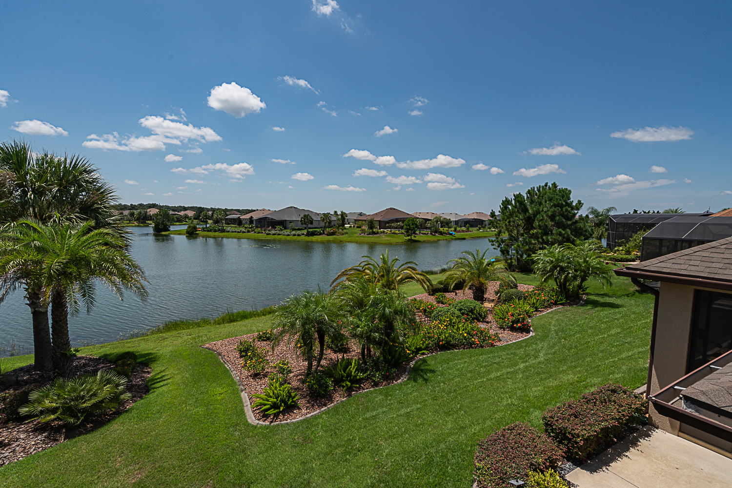 Photo of a home taken yesterday. Interesting 55+ community. Original application to develop had choice of "another typical golf course" community which would take forever to approve and permit, or something different. They chose to make lakes out of what would have been fairways and nothing like it assures quick approval. (Now that I look at it, need to go back and get those verticals a little straighter. Hard to get it right in camera when using a pole.)