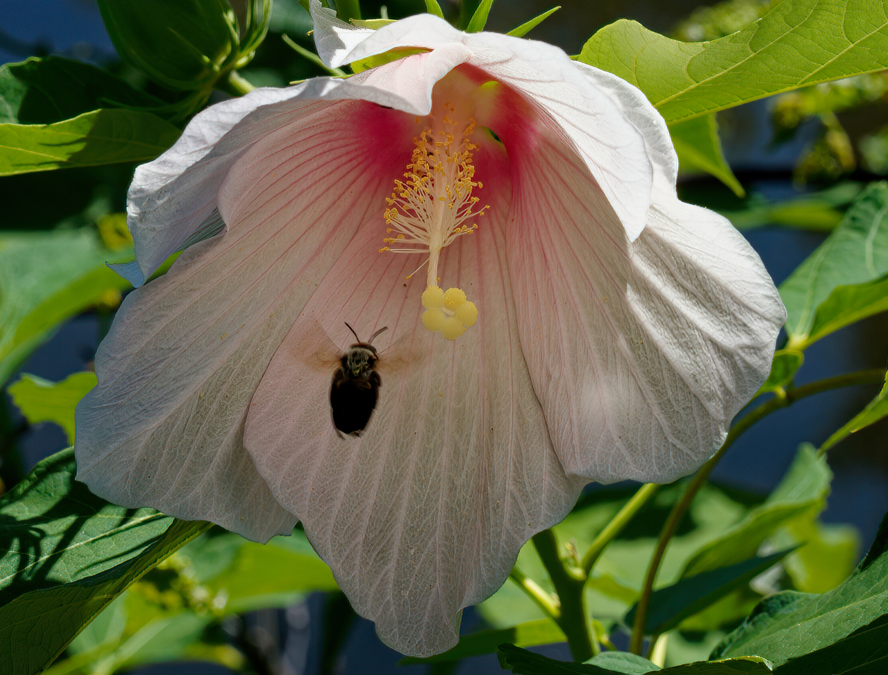 I find that knowing my subject a little better helps with photographing it. Either knowing when and where to find it, or understanding what is going on. Plants aren’t often as interesting as creatures, but it can be fun to spot a very rare plant in your environment.Thank you, Molly!! And Darmok, too! I had run a couple of searches in Google images, trying to pull up something that would look like my flower and failed to find anything. This definitely is it -- a Swamp Hibiscus! I'd thought it kind of reminded me of a hibiscus, with the large size of it.... Our "lake," which is actually a storm water retention pond, definitely fits the bill for the kind of location in which these would grow, too -- they are on both sides of the lake and start blooming in late July, lasting pretty well throughout August and into September.