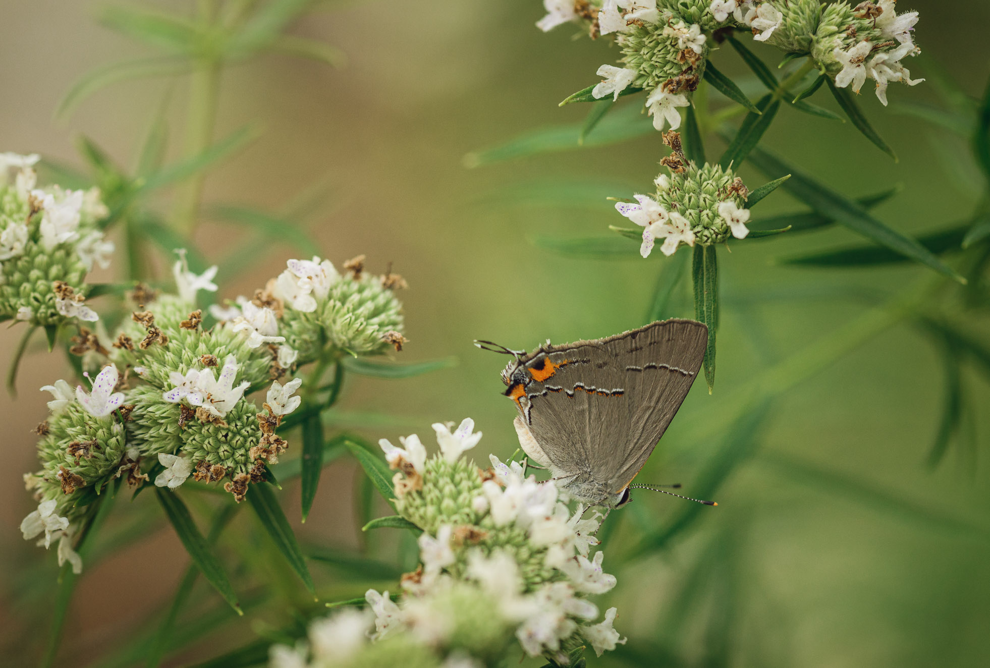 this is a gray hairstreak, which is apparently rather common, but i'd never seen one before to my recollection. nikon z6ii + nikon 105 macro, ISO 800, f/5.6, 1/500 + two images stacked