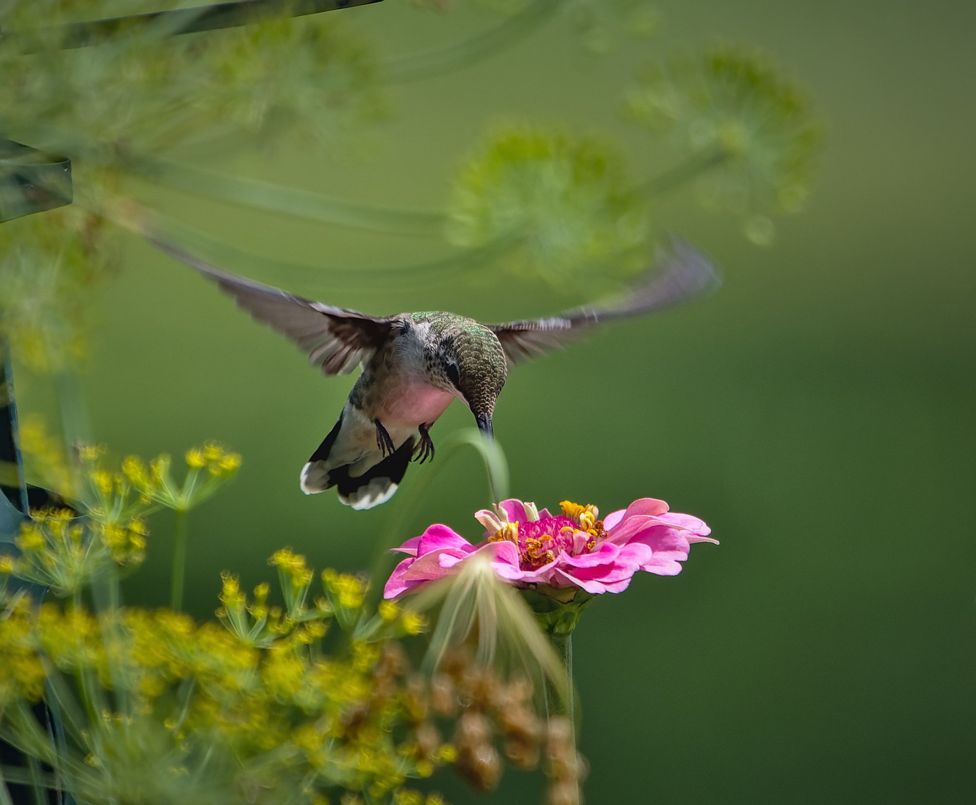 A second those who have praised your photo. It's quite beautiful!Thanks. It was some good fortune for sure. I also like how the light of the zinnia reflects off the iridescent chest as well. That really came out in post. I still see this little fella in the garden, with possibly a mate!