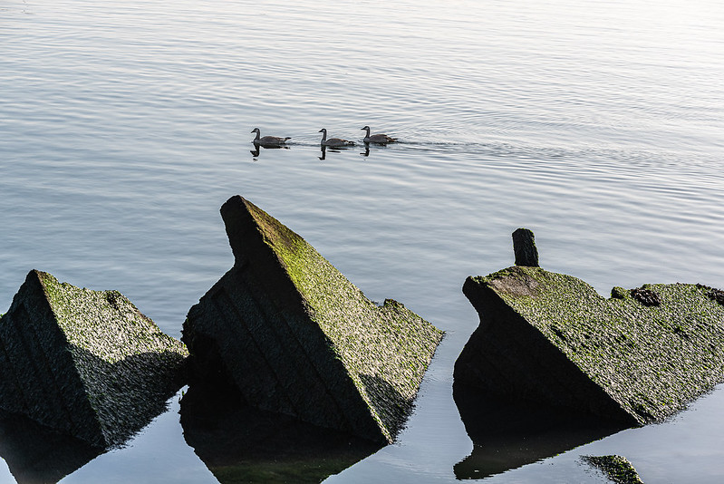 About to take a stroll around the lake, I paused to take a shot of the flowers decorating the front of the boardwalk, plus the view, and saw a little birdie friend perching on the rope, too: