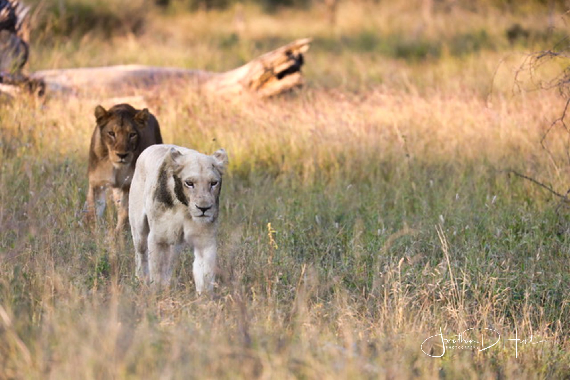 how very exciting for you!!!The last trip to Africa resulted in one of the most incrediable opportunities of my life. We were tracking a pair of lioness most of the morning. The decision was made to swing a wide circle and see if we could get in front of them. Ninety minutes later walking towards us was the holy grail of Africa, a white lion. She was one of the 6 remain wild white lions remaining on the planet. The brown color on her is Cape Buffalo dung, she and her sister were pairalleling a herd of them in hopes of making a kill. Timbavati South Africa View attachment 2029552