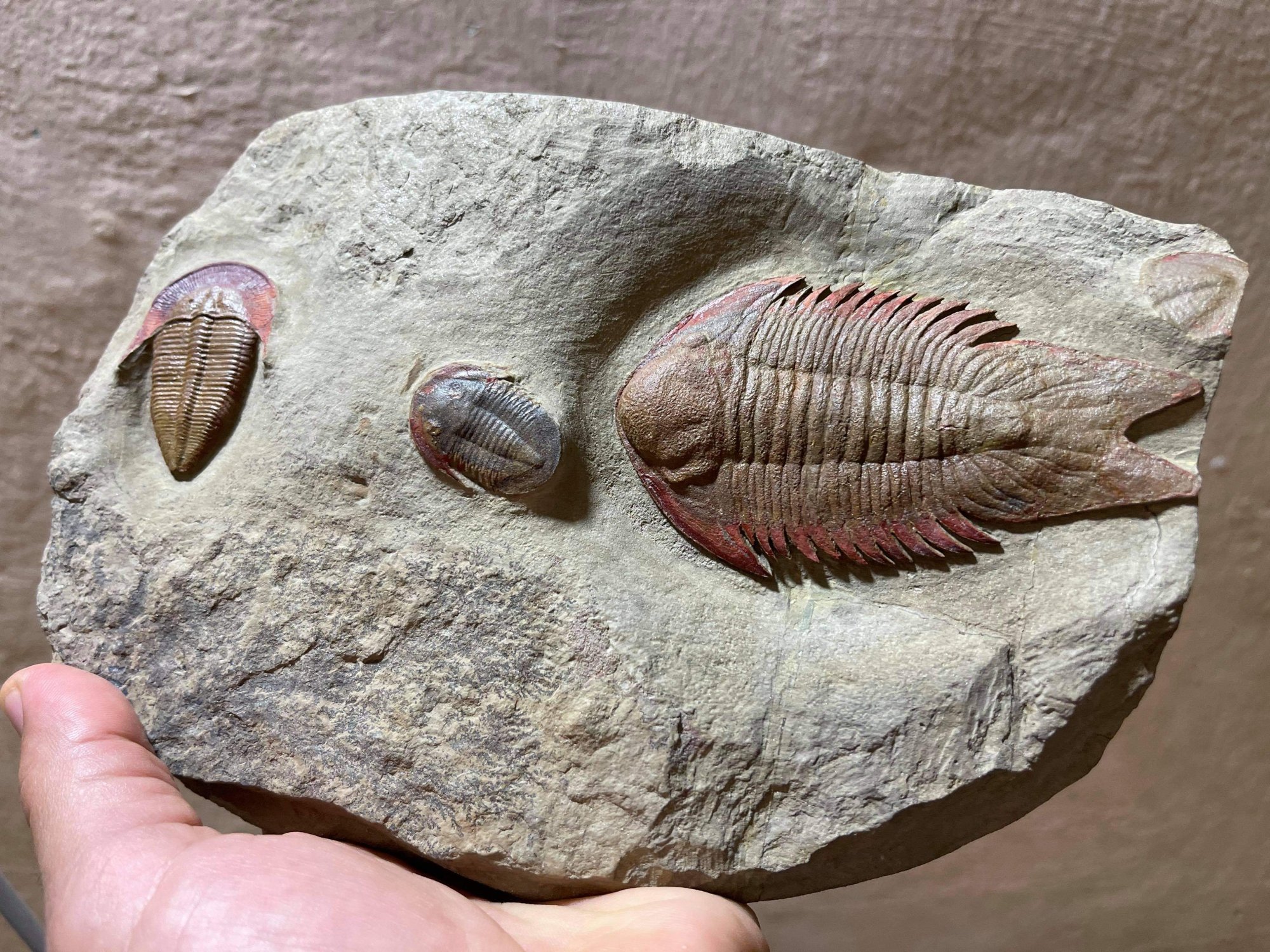 This slab was collected for the two other trilobites this was found by accident by my good friend from Erfoud Morocco when they were cleaning the two other trilobites (Listed below on left shade from the rare specimen)