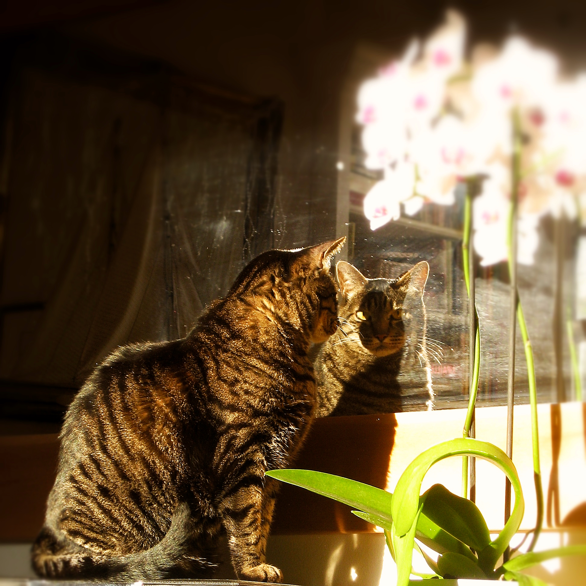 Rufus looks like a fierce tiger.This week's P52 Week 28 thread took me back to when I snapped this pic of our much loved and much missed Tabby cat, Rufus while he was making the most of the early Autumnal morning light.