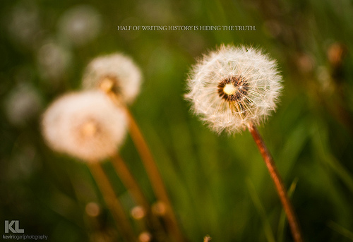 I like the photo, but not the message. Horrible quote. Hiding the truth is half of lying, not of writing history. But again, it's a really nice photo. I attempted a dandelion shot last weekend and wasn't able to get anything this good.