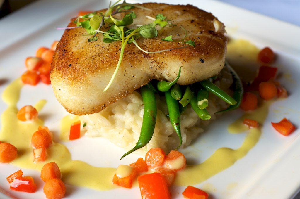 Mine for today: EXIF Summary: 1/50s f/6.3 ISO200 50mm (35mm eq:75mm) Pan seared seabass with tomatillo risotto, sauteed haricot vert, carrots, red peppers and masa cream. Chef Jay