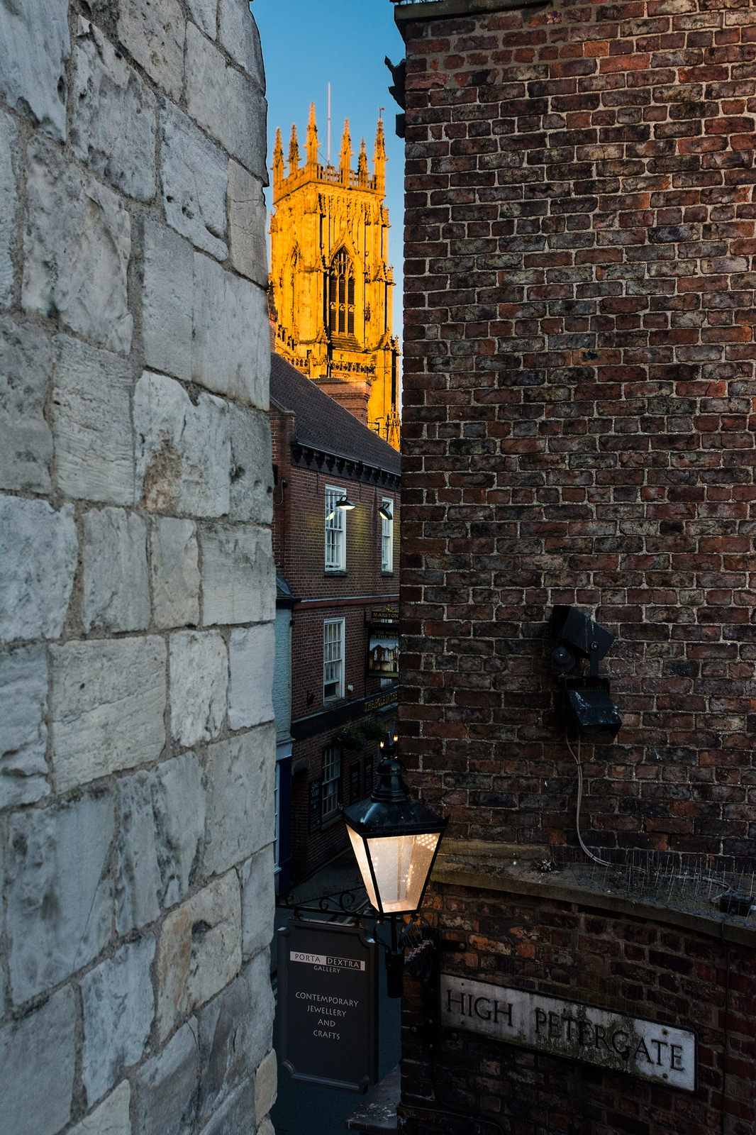 York Minster bathed in the late evening sunshine. Shot from the city wall.