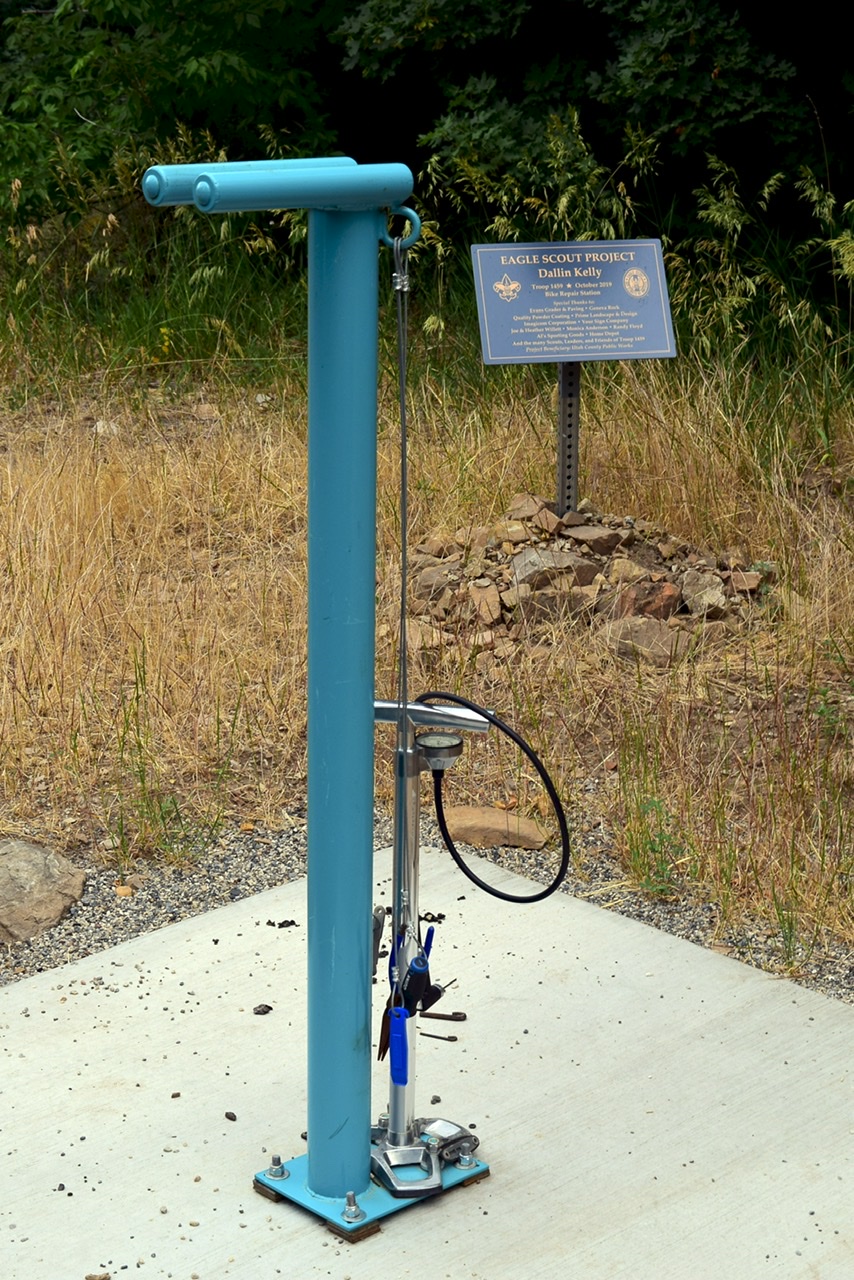 Bike repair station put up by a Boy Scout, along the path through the canyon.