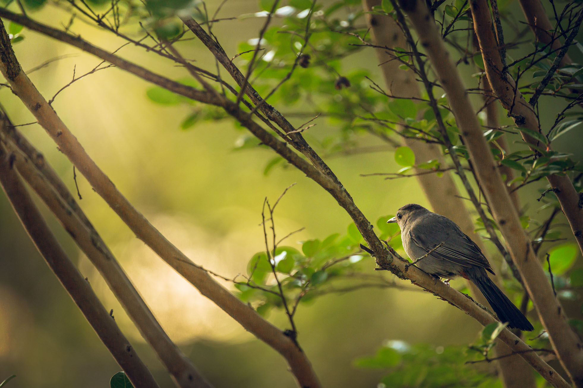 Wonderful light! Bravo!I sat on my front porch last night for about an hour. About eleventy billion birds flew past, but only this catbird was kind enough to sit for me.