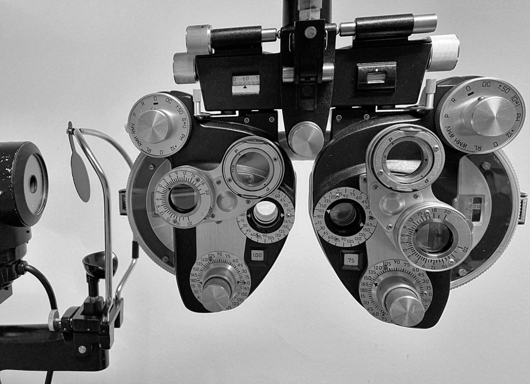 Tools of the trade in an ophthalmology office.... Yesterday while sitting in the exam room waiting for the doc to come in I couldn't resist pulling out the iPhone and taking a couple of shots. Usually the exam room is kept dark because the patient has just had their eyes dilated, but that wasn't the case for me, as I was there to see about what was causing one eye to be red, irritated and painful. (Turned out to be a couple of eyelashes that were growing the wrong way and rubbing against the eye, causing some abrasions.) Anyway this setup fascinated me: