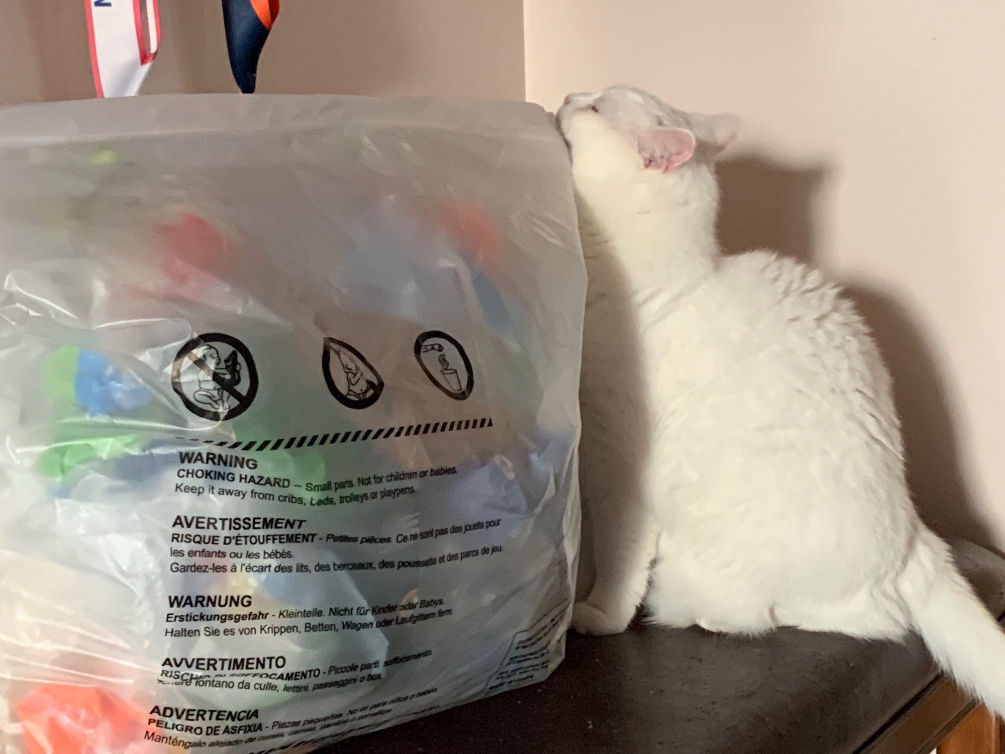 Don’t tell your loves plastic bags too. My boy chews on them all the time.Luna squealed in pleasure when she saw the big plastic bag full of other plastic bags, so lickable!
