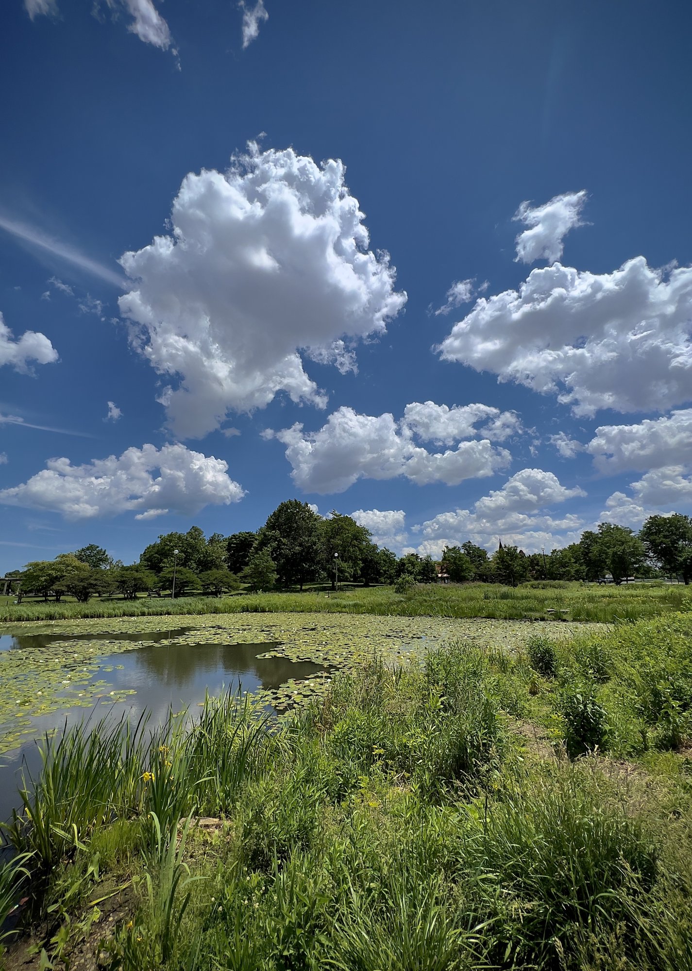 Wonderful cloud formations, mirroring the pattern of the Lilly's in the pond.