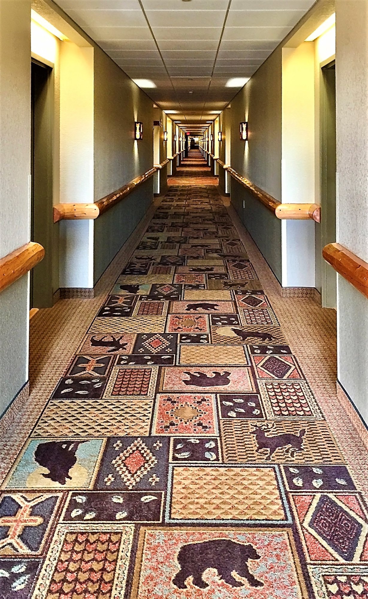 For some reason, the first thing that popped into my head was the hallway from the Overlook Hotel in the movie version of The Shining. YikesI call it "The Endless Hall". Family trip to Charlotte, NC for a weekend at Great Wolf Lodge indoor water park. The place is huge.