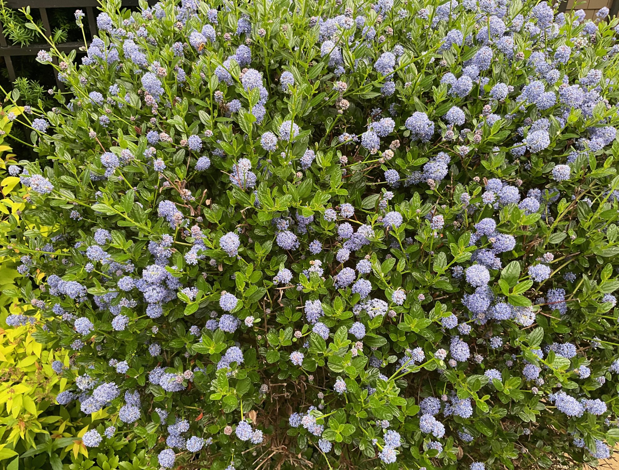 Ceanothus Victoria or California lilac, : I like the blue flowers and the honey scent that attracts so many bees and bumblebees