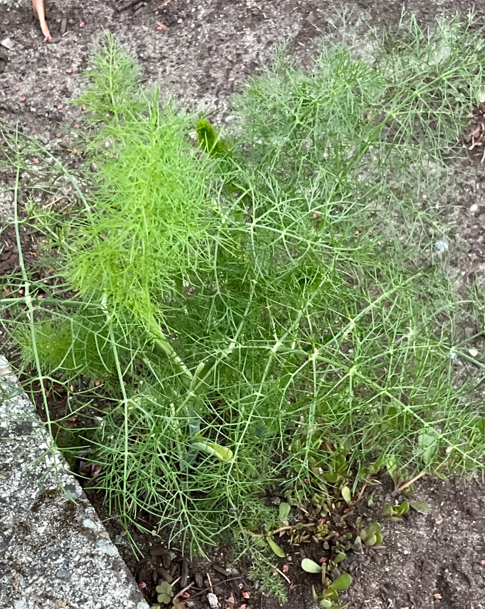 I believe that is asparagus.... closer look at a plant I enjoy seeing -- haven't a clue what it is, but it looks "fern like", though more delicate -- caught this one during a recent early-morning walk in the neighbourhood.