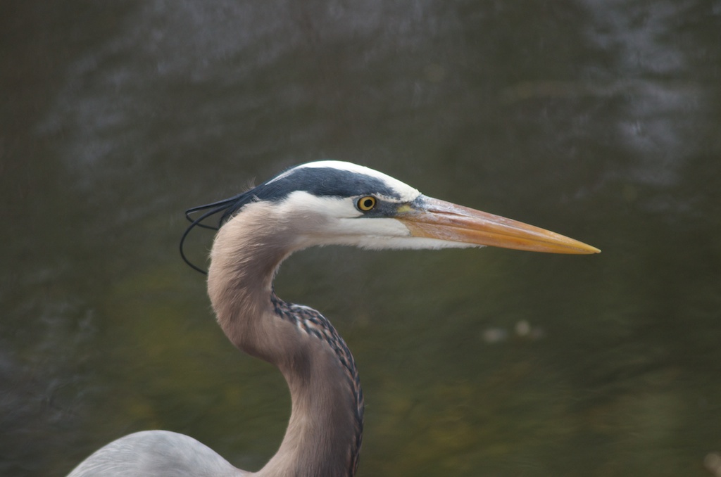I've lurked for quite some time and I've finally decided to contribute. I'm an amateur with the camera and eager to learn so I'd appreciate any advice on improving the photo! This is a picture of a Great Blue Heron who frequents the lake near my office. I took this during my lunch break.