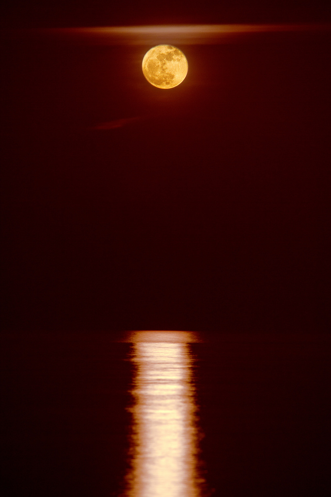 I like this a lot. the colors are a great capture and I like the reflection. There's too much distance between the moon and the reflection, though. Next time move the horizon down by about 1/3...