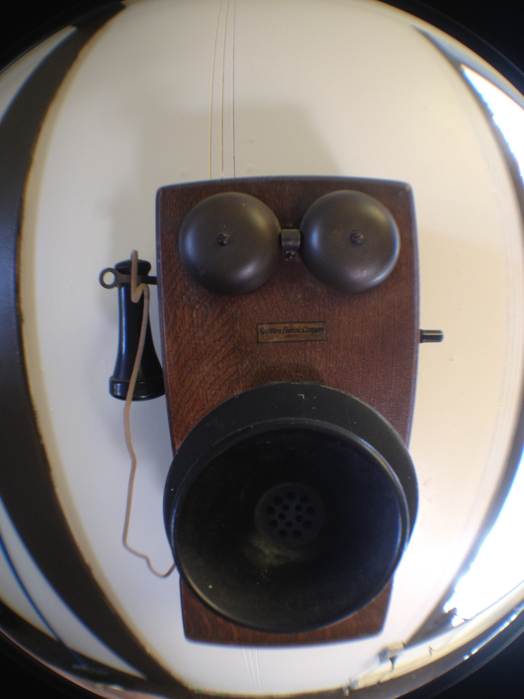 An old telephone in brother's restaurant taken with my iPhone 4S using the Olloclip fisheye lens