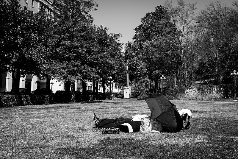 For class I have been experimenting with shooting distorted panos using a 14mm lens. After I finished up the pano work I decided to run out the memory card shooting a star trail segment. I believe this was a stack of 24 images shot at the following: 14mm, 20 seconds, ISO 3200, f-4. The white balance is set to tungsten, the sky and background are lit by a quarter moon and the foreground outcropping is lit by a tungsten light source. The sRGB color space crushed colors a bit but I was just playing around with this one.