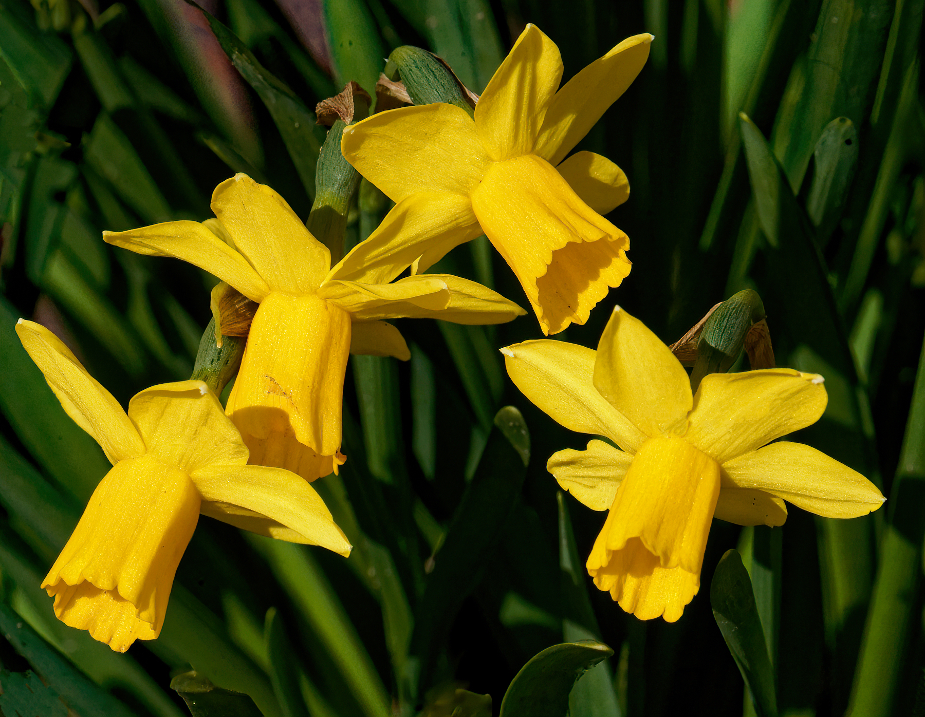 Funny. With nothing else in the frame I couldn’t tell. We have a few miniature ones as well.These are the miniature daffodils, which bloomed a few days ago and are still going strong -- the bigger ones are just starting, and so far only one, with another one about to pop. I haven't been out front yet today to check on progress, though.....