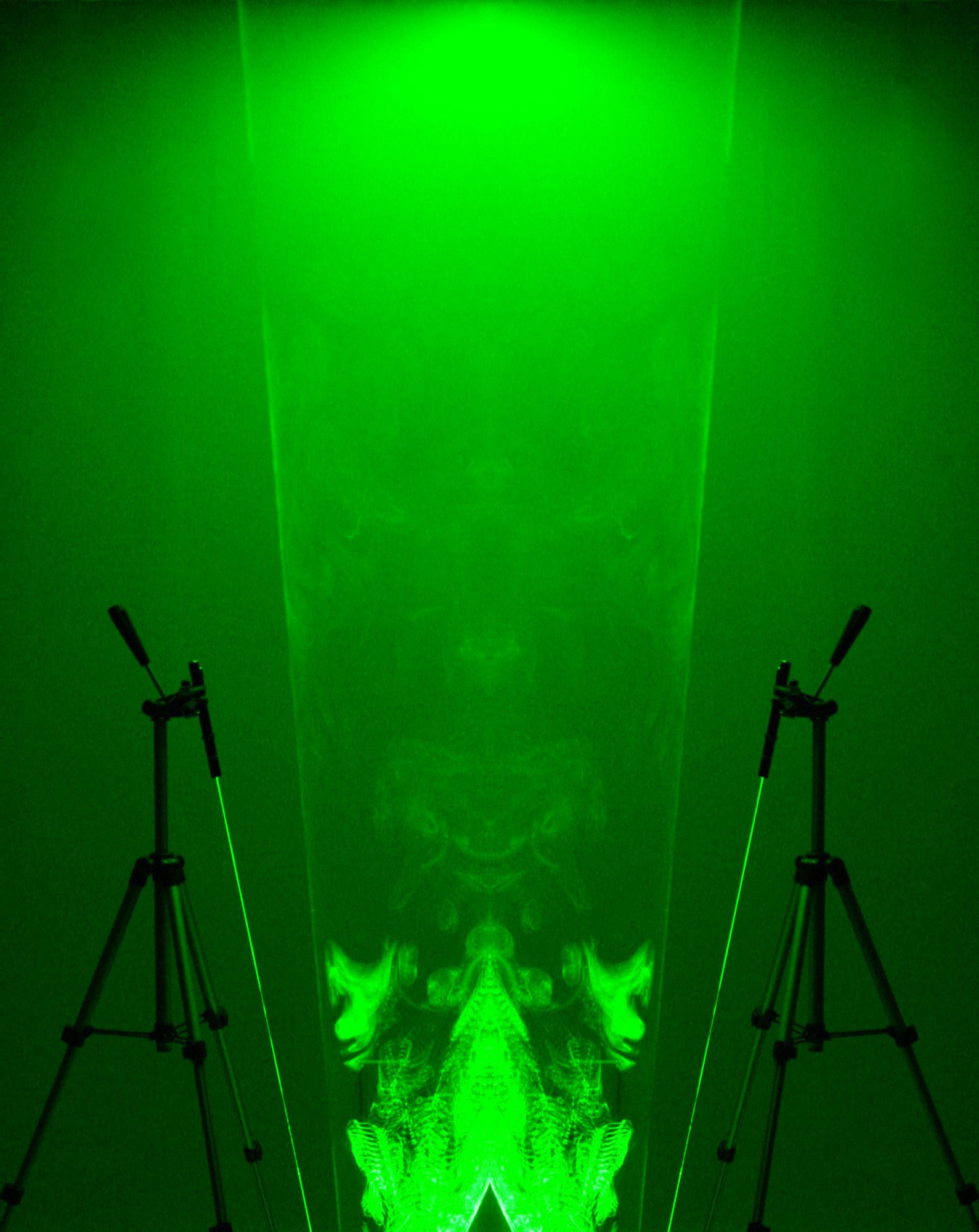 Effects done with mirrors and incense smoke, and then mirrored in PS.