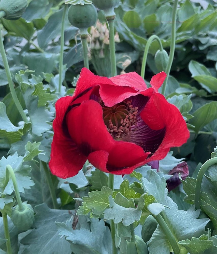 Beautiful Poppy! What is the line across the top of the photo?.. found a small patch of poppies via my walks in a local, Municipal Park last year .... here's the only photo I was able to catch with the petals of a flower parted enough to look a little inside. (July1/22) (camera on my iPad Mini 6)