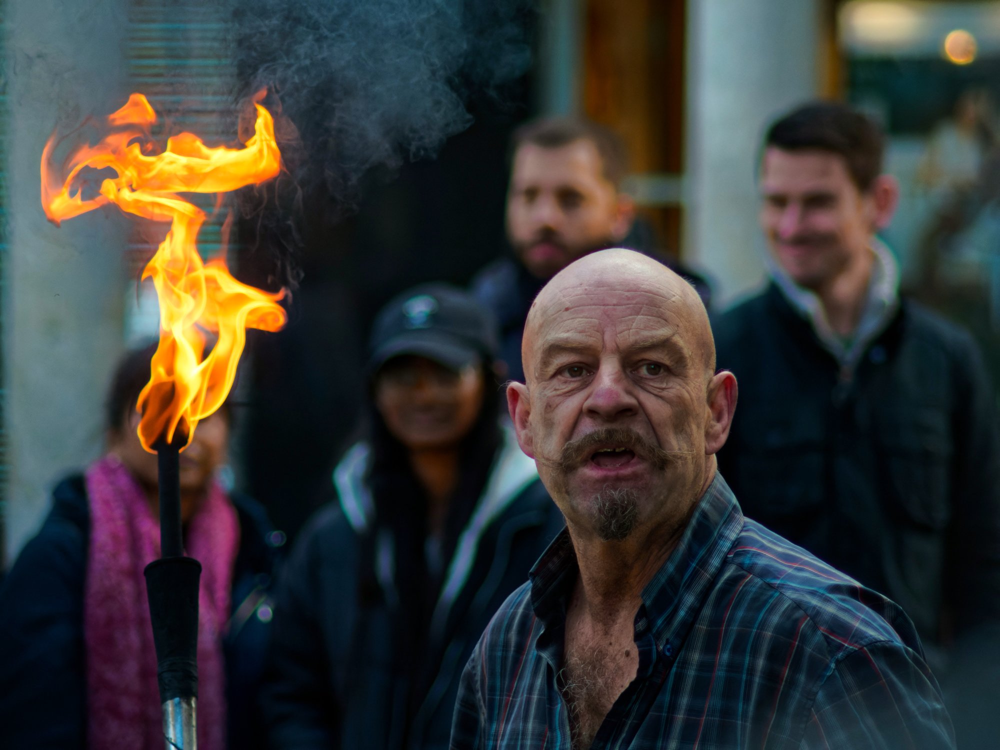 He's on his way to heat up the Bath water !Is fire-eating popular in Bath?