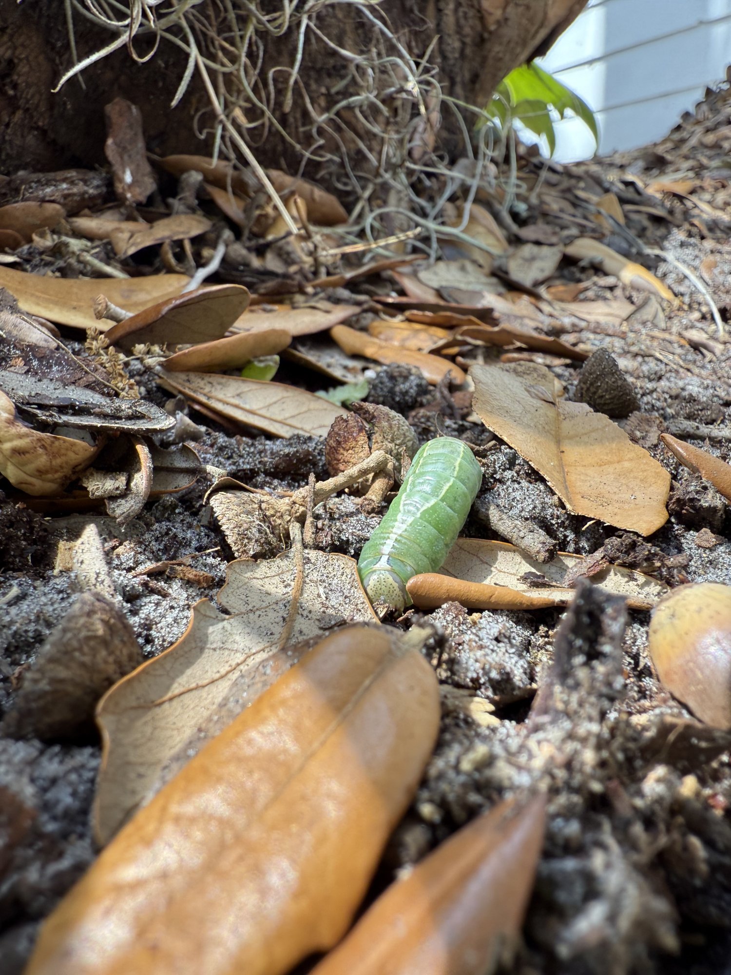 Weird green worm I found while raking. Taken with iPhone 16 Pro