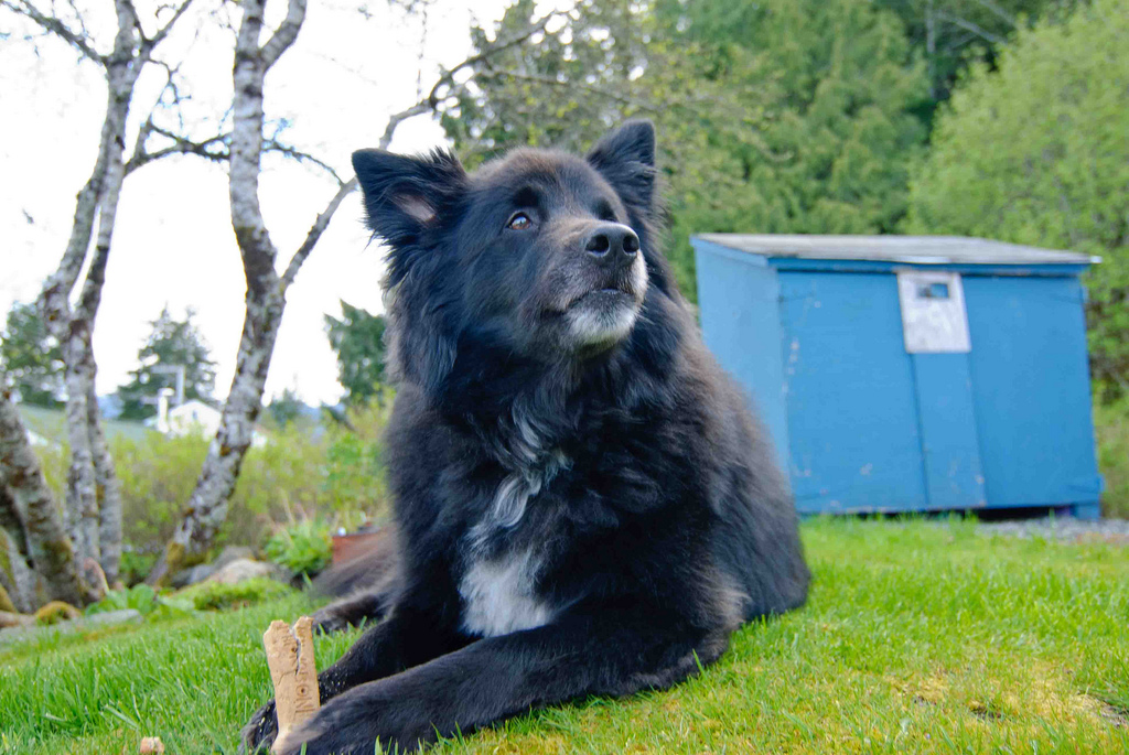 You could also have lowered the angle just a bit since there was room above her head. Sometimes going too wide brings in too much distortion and this focal length appears about right. And I'd bump up the blacks a bit to increase the contrast, but, I do like the moment and how you've caught her in the middle of enjoying a nice treat. She looks like a great subject (speaking as one dog lover to another...