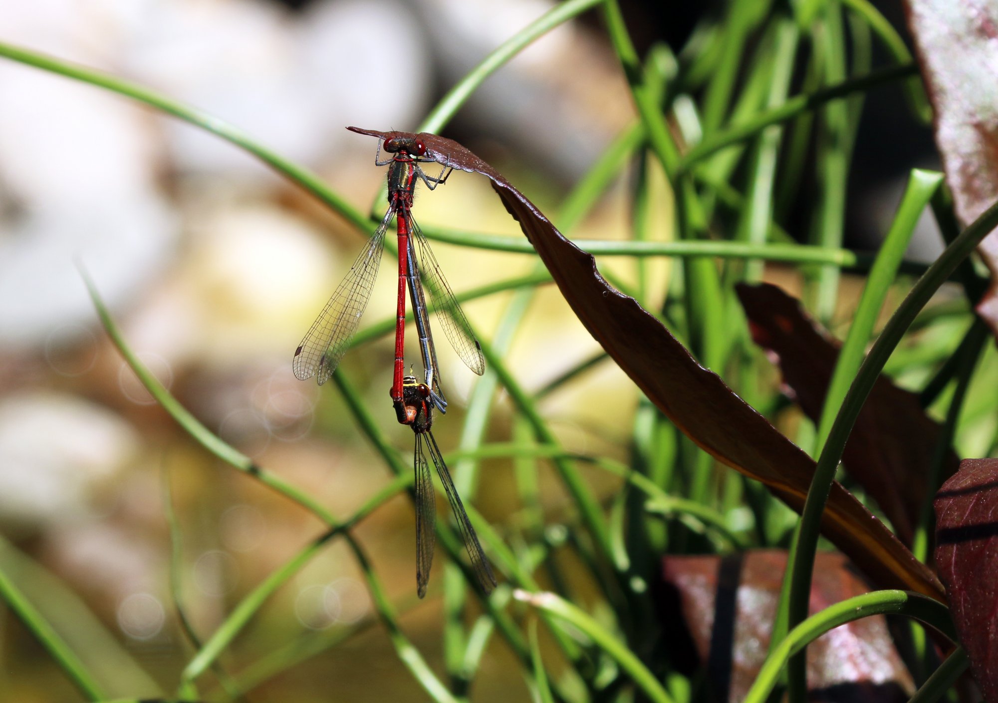 Here you can see the 'mating wheel' in action. Moments later, off she went to oviposit her eggs in the pond, with him still attached. I'm not sure if the male here is having a bit of lunch whilst doing the business, he was quite happily hanging with the leaf in his mouth. Guess he was enjoying cake whilst eating it too!