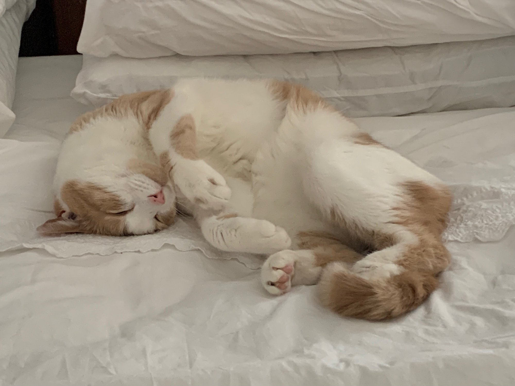 Wow. This was one of Ruby’s favorite poses too.Sinclair showing "odd pet sleeping position #32":