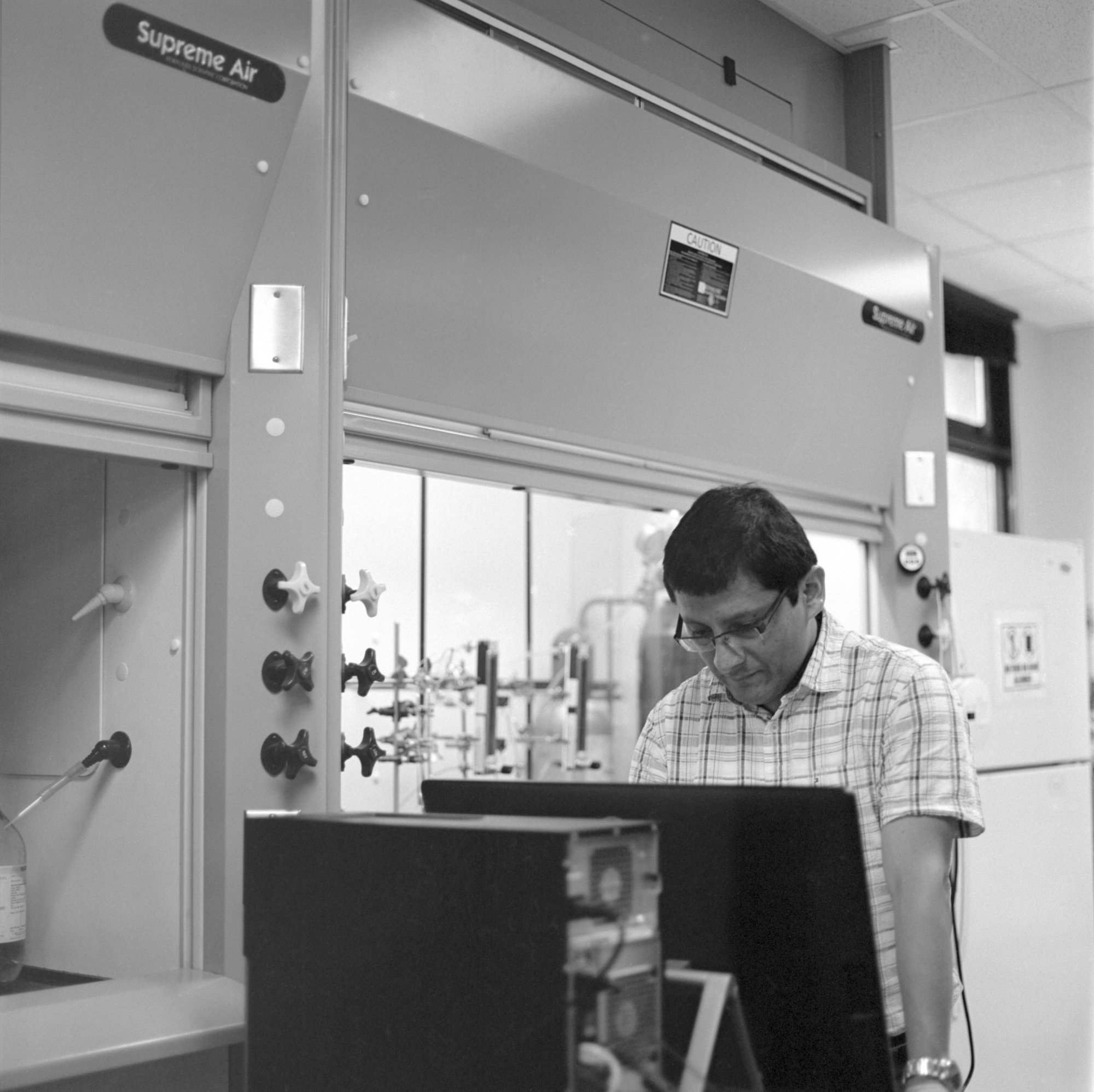 This gentleman was a lab mate and also a friend. I snapped him hard at work at his fume hood in the lab, and actually was pleasantly surprised at the result.
