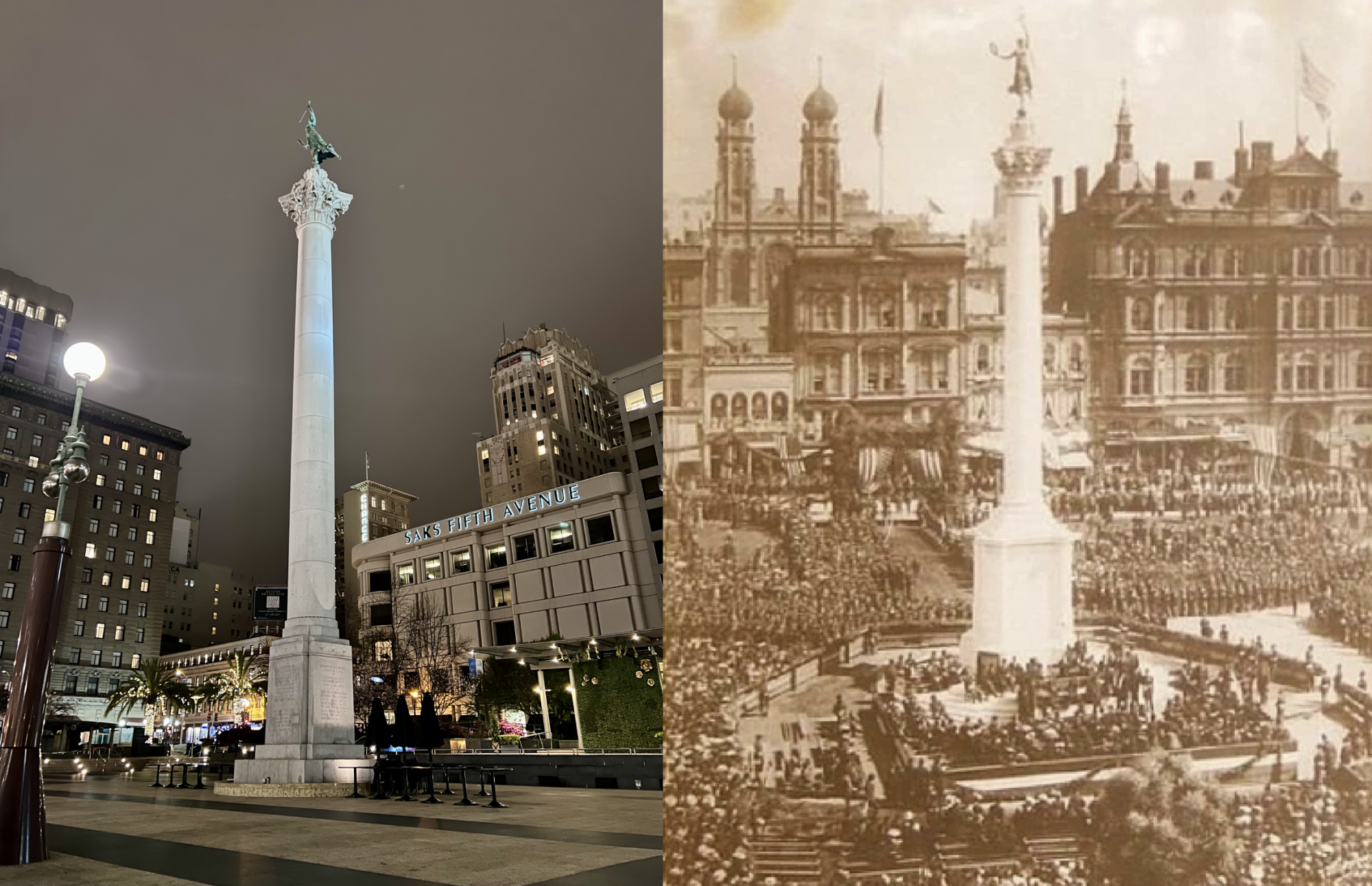 🗼On the top is The Goddess of Victory statue atop the Dewey Monument. The monument was erected to honor Admiral George Dewey, a hero of the Spanish-American War, for his victory in the Battle of Manila Bay.